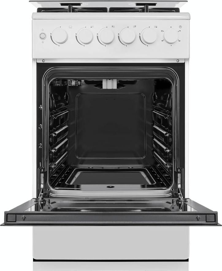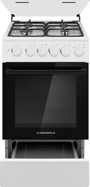 Газовая плита Maunfeld MGC50GCW08D — отличный выбор как для квартиры, так и для частного дома. Цвет корпуса белый, он гармонично сочетается с мебелью и техникой похожих оттенков, а также может интересно выглядеть на контрасте с ними. Для управления используется удобная и понятная механическая система. Благодаря ей выбирать режимы приготовления и настраивать параметры температуры очень просто. Переключатели не только выполняют техническую функцию, но и поддерживают общий дизайн; тип элементов: поворотные.