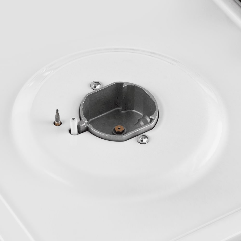 Автоматический электроподжиг конфорок в газовых варочных центрах позволяет получить пламя без использования спичек или зажигалок. В зависимости от модели поджечь поступающий в горелку газ можно либо поворотом переключателя, либо реже нажатием на кнопку. При повороте на переключатель необходимо нажать, а затем удерживать его несколько секунд. Таким образом гарантируется безопасное использование газовой конфорки и существенно уменьшается вероятность ожога. Для работы электроподжига необходимо подключить варочный центр к электросети: расход энергии при этом будет минимальным.