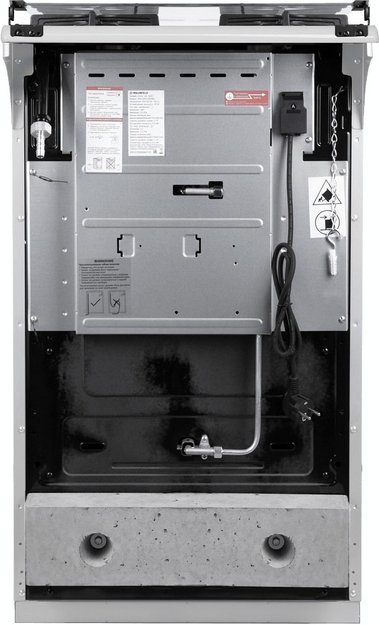 Внутренняя поверхность имеет специальное защитное покрытие: эмаль легкой очистки хорошо аккумулирует и держит тепло, не нуждается в специфическом уходе. Следуйте инструкции для удаления загрязнений — и прибор прослужит вам много лет без повреждений. Система электроподжига газовой духовки упрощает работу, а также защищает вас от высоких температур. Отдельный газ-контроль для камеры дополнительно гарантирует безопасность использования. Продуманная система направляющих для противней предупреждает падение тяжелой посуды при ее загрузке и извлечении: в этой модели используются рельефные элементы. Приятный бонус — специальное отделение для хранения посуды и аксессуаров.