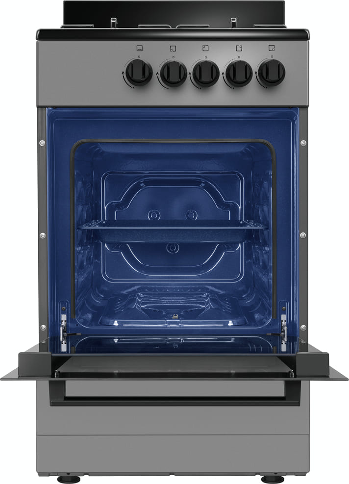 Газовая плита Maunfeld MGC50GEGR01D — отличный выбор как для квартиры, так и для частного дома. Цвет корпуса серый, он гармонично сочетается с мебелью и техникой похожих оттенков, а также может интересно выглядеть на контрасте с ними. Для управления используется удобная и понятная механическая система. Благодаря ей выбирать режимы приготовления и настраивать параметры температуры очень просто. Переключатели не только выполняют техническую функцию, но и поддерживают общий дизайн; тип элементов: поворотные.