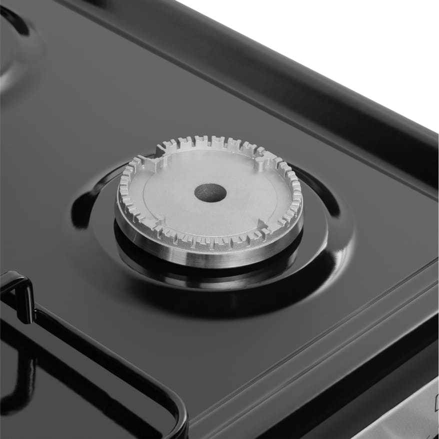 В данной модели установлена газовая варочная поверхность — эффективный нагрев, специальные механизмы для защиты вас от ожогов, плавная регулировка мощности. Стандартное количество конфорок — 4 штуки — подходит большинству пользователей. Панель сделана из металла, который обеспечивает надежность и долгий срок службы; за ней легко ухаживать.