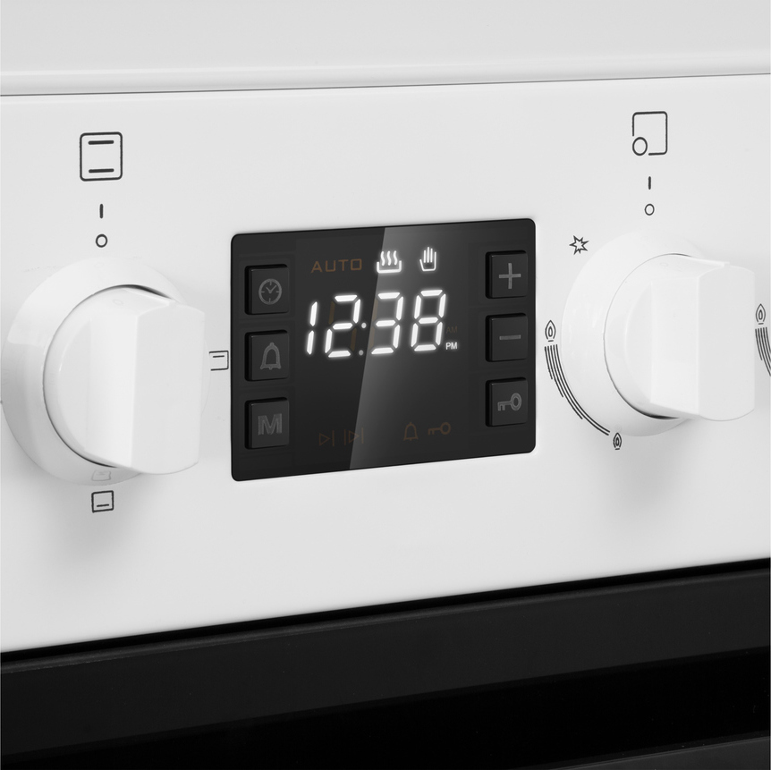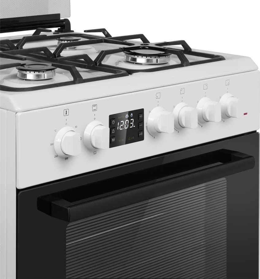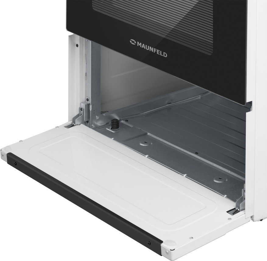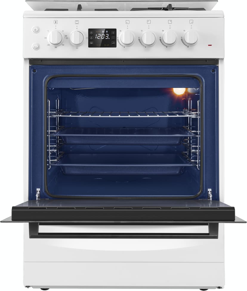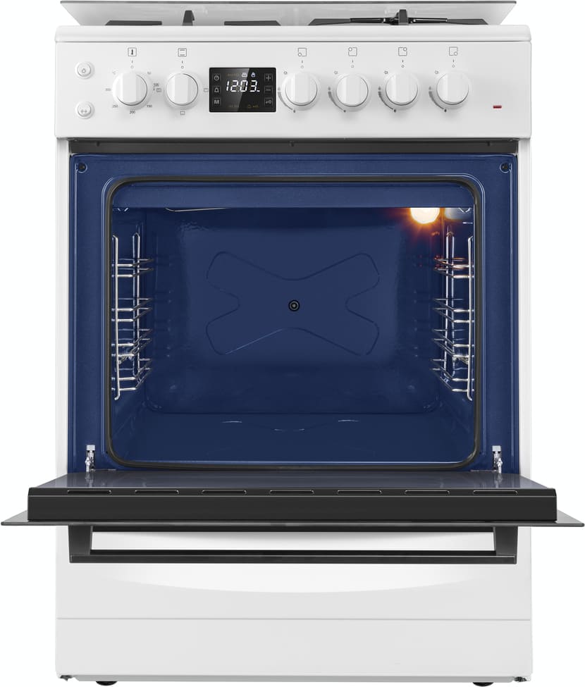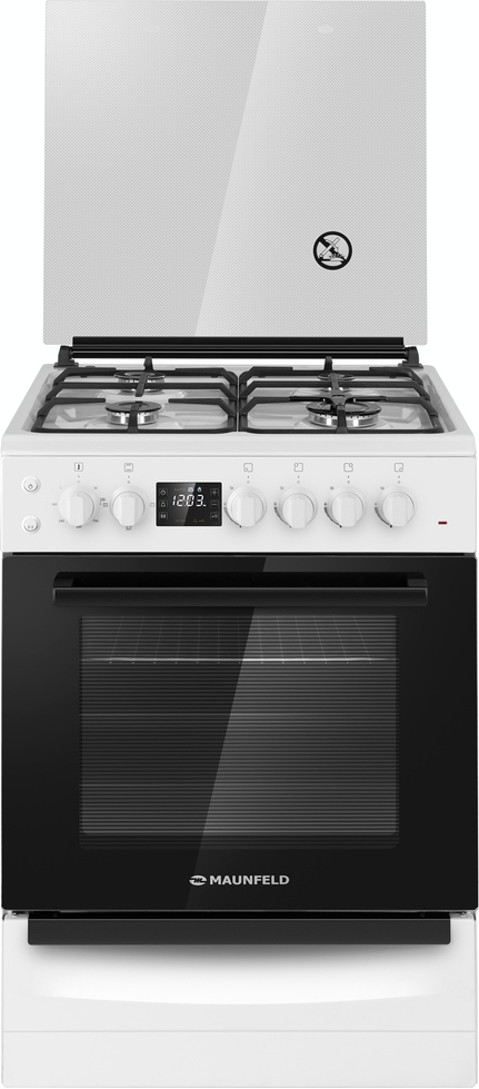 Комбинированная плита Maunfeld MGC60ECW05 — отличный выбор как для квартиры, так и для частного дома. Цвет корпуса белый, он гармонично сочетается с мебелью и техникой похожих оттенков, а также может интересно выглядеть на контрасте с ними. Для управления используется удобная и понятная электронная система. Благодаря ей выбирать режимы приготовления и настраивать параметры температуры очень просто. Основная информация о процессе отображается на дисплее. Переключатели не только выполняют техническую функцию, но и поддерживают общий дизайн; тип элементов: поворотные + кнопки.