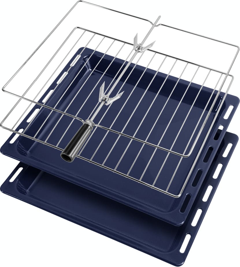 В комплект поставки вместе с варочным центром входят разнообразные аксессуары для приготовления пищи в духовом шкафу и на варочной панели. В стандартный комплект, как правило, включаются два противня — глубокий и мелкий. Мелкий противень предназначается для некоторых видов выпечки — например, печенья, открытых пирогов или пиццы. Глубокий противень подойдет для выпечки закрытых пирогов, приготовления запеканок, мясных и овощных блюд или блюд из птицы. Материалом изготовления таких противней может служить как металл с не пригорающим покрытием, так и нержавеющая или эмалированная сталь. Иногда один из противней изготавливается из жаропрочного стекла. Еще один обязательный элемент — решетка для приготовления на гриле. Решетка выполняется из нержавеющей стали: если на ней готовится мясо, птица или другие продукты, на дно камеры необходимо поместить поддон, в который будет стекать жир и сок, выделившийся при жарке.