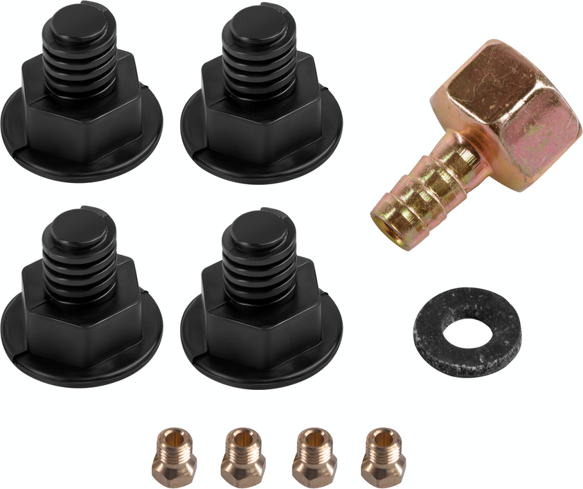 Форсунки, которые позволяют переключиться с природного на баллонный газ. Их можно установить под конфорками, чтобы топливо преобразовывалось в привычный нам огонь. Жиклеры представляют собой болты с отверстиями, которые диаметром соответствуют мощности конфорок.