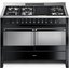 Устройства с тремя духовками также имеют один основной и две дополнительных шкафа разного объема: например, плиты Bertazzoni оснащены большой духовкой объемом 69 литров, средней объемом 54 литра и малой объемом 24 литра. Духовки располагаются в два ряда: две меньшие духовки в одном ряду, большая и ящик для посуды в другом.