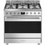 Газовая плита Smeg C9GMX9-1 — отличный выбор как для квартиры, так и для частного дома. Цвет корпуса нержавеющая сталь, он гармонично сочетается с мебелью и техникой похожих оттенков, а также может интересно выглядеть на контрасте с ними. Для управления используется удобная и понятная электронно-механическая система. Благодаря ей выбирать режимы приготовления и настраивать параметры температуры очень просто. Основная информация о процессе отображается на дисплее. Переключатели не только выполняют техническую функцию, но и поддерживают общий дизайн; тип элементов: сенсорные + поворотные.