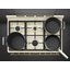 Модели в классическом, кантри, ретро-стиле оснащаются переключателями в рукоятками из металла, в том числе бронзы, латуни, или из термостойкого пластика. Эти элементы управления не только просты, хорошо всем знакомы и надежны, но и способны подчеркнуть дизайн изделия. Минус их в том, что сложные выступающие детали заметно неудобны в очистке. Подобные переключатели используются в варочных центрах в современном стиле: для удобства в уходе они зачастую делаются утапливаемыми. При утапливании они не выступают над поверхностью панели управления, что облегчает ее очистку.