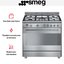 Газовая плита Smeg SUK91MFX9 — отличный выбор как для квартиры, так и для частного дома. Цвет корпуса нержавеющая сталь, он гармонично сочетается с мебелью и техникой похожих оттенков, а также может интересно выглядеть на контрасте с ними. Для управления используется удобная и понятная электронно-механическая система. Благодаря ей выбирать режимы приготовления и настраивать параметры температуры очень просто. Основная информация о процессе отображается на дисплее. Переключатели не только выполняют техническую функцию, но и поддерживают общий дизайн; тип элементов: поворотные + кнопки.