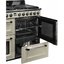 Устройства с тремя духовками также имеют один основной и две дополнительных шкафа разного объема: например, плиты Bertazzoni оснащены большой духовкой объемом 69 литров, средней объемом 54 литра и малой объемом 24 литра. Духовки располагаются в два ряда: две меньшие духовки в одном ряду, большая и ящик для посуды в другом.