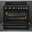 Устройства с тремя духовками также имеют один основной и две дополнительных шкафа разного объема: например, плиты Bertazzoni оснащены большой духовкой объемом 69 литров, средней объемом 54 литра и малой объемом 24 литра. Духовки располагаются в два ряда: две меньшие духовки в одном ряду, большая и ящик для посуды в другом.