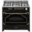 Устройства с тремя духовками также имеют один основной и две дополнительных шкафа разного объема: например, плиты Bertazzoni оснащены большой духовкой объемом 69 литров, средней объемом 54 литра и малой объемом 24 литра. Духовки располагаются в два ряда: две меньшие духовки в одном ряду, большая и ящик для посуды в другом.