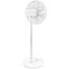 Напольный вентилятор с функцией горизонтального и вертикального обдува: круг с лопастями поворачивается вокруг оси на 120 градусов, а также поднимается и опускается под углом 15-25 градусов. Модель выполнена в классическом белом цвете.