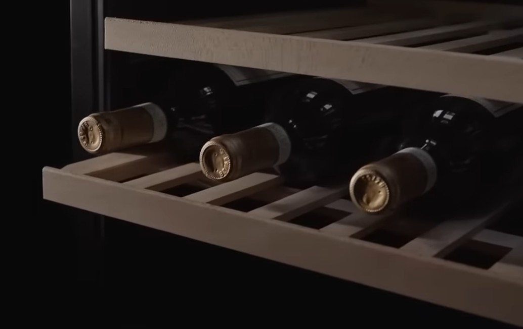 Дерево считается наиболее подходящим материалом для полок в винных шкафах. Решетчатые полки из натурального дерева позволяют правильно расположить бутылки — горизонтально или под небольшим наклоном для того, чтобы пробка омывалась вином и не высыхала. Залог правильного хранения вина — постоянная температура: дерево намного меньше подвержено колебаниям температуры, чем металл. Еще одно его преимущество — способность гасить небольшие вибрации в компрессорных винных шкафах, также оказывающие вредное влияние на качество вина. Особенно хороши в этом отношении полки из вишни.