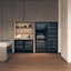 Встраиваемые холодильники для вина оснащаются специальной системой вентиляции: охлаждающая система у них находится в нижней части корпуса спереди. На такие устройства не навешивается мебельный фасад: дверца с затемненным стеклом остается на виду и открывается на достаточно широкий угол для свободного выдвижения деревянных полок.
