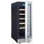 Стеклянная дверь — дополнительный изящный штрих к общему дизайну модели. Специальное покрытие защищает вино от влияния ультрафиолетовых лучей, которые проникают, если шкаф находится в солнечной комнате. Цвет корпуса — металл. Дверь можно перевесить на другую сторону, поэтому вариантов размещения его в доме становится больше.