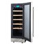 Производители предлагают винные шкафы, оснащенные одной, двумя, тремя и четырьмя камерами, которые могут располагаться как друг под другом, так бок и бок. Самые популярные — однокамерные модели, ассортимент которых особенно широк, но втором месте — двухкамерные. Над заметить, что количество камер не зависит напрямую от габаритов изделия: например, однокамерные модели увеличенных габаритов — далеко не редкость. Их высота может варьироваться в пределах от 14 см до 219 см, а ширина — от 13 см до 150 см.