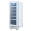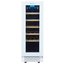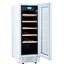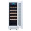 Стеклянная дверь — дополнительный изящный штрих к общему дизайну модели. Специальное покрытие защищает вино от влияния ультрафиолетовых лучей, которые проникают, если шкаф находится в солнечной комнате. Цвет корпуса — белый. Дверь можно перевесить на другую сторону, поэтому вариантов размещения его в доме становится больше.