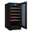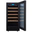 Стеклянная дверь — дополнительный изящный штрих к общему дизайну модели. Специальное покрытие защищает вино от влияния ультрафиолетовых лучей, которые проникают, если шкаф находится в солнечной комнате. Цвет корпуса — черный. Дверь можно перевесить на другую сторону, поэтому вариантов размещения его в доме становится больше.