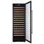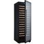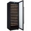 Стеклянная дверь — дополнительный изящный штрих к общему дизайну модели. Специальное покрытие защищает вино от влияния ультрафиолетовых лучей, которые проникают, если шкаф находится в солнечной комнате. Цвет корпуса — черный. Дверь можно перевесить на другую сторону, поэтому вариантов размещения его в доме становится больше.