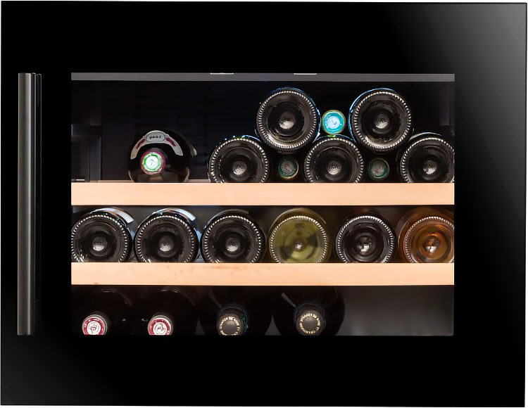 Стеклянная дверца винного шкафа — опция, которая решает сразу несколько задач. Прежде всего, она обеспечивает хороший обзор, позволяет контролировать коллекцию и демонстрировать ее, не открывая дверцу и не нарушая температурный режим. Стекло не только позволяет изолировать вино от наружного воздуха, но и не пропускает посторонние запахи. Прямые солнечные лучи также отрицательно влияют на качество вина, вызывая окисление танина — соединения, которое в нем содержится, и напиток становится горьким. Стеклянные дверцы снабжаются фильтрами или покрытием, защищающим бутылки по ультрафиолета. Способы защиты могут быть самыми разными — от наклеенной пленки до специального напыления. Иногда в дверцу устанавливается зеркальное стекло, в других случаях на него наносят тонировку в технике шелкографии.