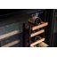 Ширина винного шкафа, как и другие их габариты, обязательно учитывается при выборе модели для домашнего или профессионального использования. Встраиваемые и отдельно стоящие модели выпускаются в самом широком ассортименте, так что разброс значений максимально велик. Неизменным спросом пользуются винные шкафы стандартной ширины — от 40 до 80 см, в современном и классическом стиле. Для встраиваемых шкафов наиболее удобной является ширина 60 см, позволяющая устанавливать их в кухонную тумбу или колонну. Вместимость их может быть самой различной и зависит в большей степени от высоты прибора. Маленькие винные шкафы с размещением на столешнице или даже с креплением к стене, рассчитанные на хранение от одной до десяти бутылок, могут иметь минимальную ширину от 13 см. На полках у них обычно помещается не более 5 бутылок, и используются они для охлаждения вина перед подачей. Большие винные шкафы с несколькими камерами и температурными зонами для длительного хранения и созревания разных сортов вина могут иметь ширину до 180 см, а максимальное значение этого параметра может составить 300 см. Как правило, это отдельно стоящие модели в деревянном корпусе с камерами side-by-side.