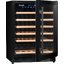 Производители предлагают винные шкафы, оснащенные одной, двумя, тремя и четырьмя камерами, которые могут располагаться как друг под другом, так бок и бок. Самые популярные — однокамерные модели, ассортимент которых особенно широк, но втором месте — двухкамерные. Над заметить, что количество камер не зависит напрямую от габаритов изделия: например, однокамерные модели увеличенных габаритов — далеко не редкость. Их высота может варьироваться в пределах от 14 см до 219 см, а ширина — от 13 см до 150 см.