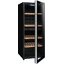 Дверца у большинства винных шкафов изготавливается из многослойного тонированного стекла. Такой материал, с одной стороны, позволяет оценивать коллекцию вин визуально, не открывая дверцу, в условиях стабильной температуры и влажности. С другой стороны, затемненное стекло с УФ-фильтром в виде напыления или специальной пленки надежно изолирует винные бутылки негативного воздействия ультрафиолетового излучения. Несколько слоев стекла обеспечивают при этом дополнительную защиту. Очень часто стекло в дверце заключается в рамку из дерева или металла. Натуральный или окрашенный металл или дерево не только способствуют прочности конструкции, но и превращают винный холодильник, особенно отдельно стоящий, в эффектный элемент обстановки.