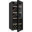 Винный шкаф Climadiff CLD115B1 выполнен в строгом черном корпусе с элегантной стеклопакетной дверью и UV-защитой, что сохраняет этикетки и аромат вина. Его компактные габариты 125,5×50×54 см позволяют разместить прибор в кухне, зоне гостиной или в барной нише. Матовое черное покрытие выглядит современно и не маркое, а правый дверной упор делает удобным встраивание в стандартные конфигурации мебели. Внутри установлен светодиодный LED-освещение, которое бережно подсвечивает бутылки, не нагревая их.