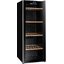 Стеклянная дверь — дополнительный изящный штрих к общему дизайну модели. Специальное покрытие защищает вино от влияния ультрафиолетовых лучей, которые проникают, если шкаф находится в солнечной комнате. Цвет корпуса — черный. Дверь можно перевесить на другую сторону, поэтому вариантов размещения его в доме становится больше.