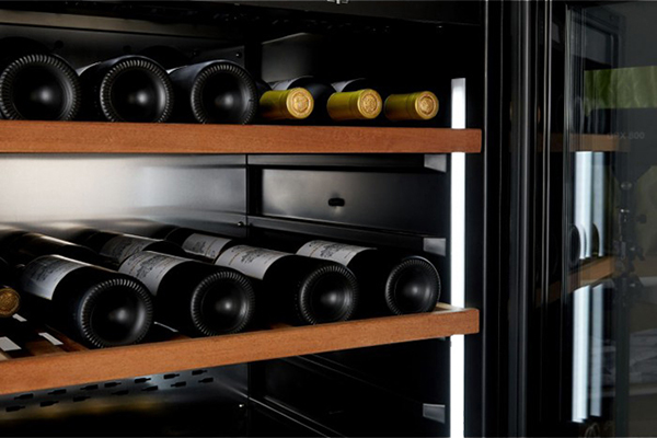 Кнопки для управления подсветкой выносятся на панель управления. Лампы синего, белого или голубого цветов могут располагаться в верхней части камеры или на боковых сторонах. Дополнительное освещение может устанавливаться в винных холодильниках с зоной для сервировки: она обеспечивает лучший обзор и доступ при подготовке вина к подаче.
