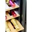 Самым подходящим материалом для изготовления полок, по мнению специалистов, является натуральное не лакированное дерево — бук, дуб, сосна, лиственница. У него множество преимуществ: прежде всего оно способно гасить мелкие вибрации. Дерево хорошо поддается обработке: решетчатые полки, например, позволяют хорошо зафиксировать бутылки, так что они не будут качаться при выдвижении. Кроме того, дерево почти не впитывает запахи и при понижении температуры на нем не образуется конденсат. В некоторых моделях применяются комбинированные полки с металлическим каркасом и деревянными держателями бутылок, а также полностью металлические. Недостаток их — образование конденсата, а значит, изменение уровня влажности, которое может привести также к порче этикеток. Самый бюджетный и наименее эффектный вариант — полки из пластика, имеющие те же недостатки, что и металлические.