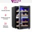 Производители предлагают винные шкафы, оснащенные одной, двумя, тремя и четырьмя камерами, которые могут располагаться как друг под другом, так бок и бок. Самые популярные — однокамерные модели, ассортимент которых особенно широк, но втором месте — двухкамерные. Над заметить, что количество камер не зависит напрямую от габаритов изделия: например, однокамерные модели увеличенных габаритов — далеко не редкость. Их высота может варьироваться в пределах от 14 см до 219 см, а ширина — от 13 см до 150 см.