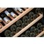 Полки в винных шкафах позволяют размещать бутылки для хранения в горизонтальном положении. Это необходимо, чтобы пробка постоянно смачивалась жидкостью и не пересыхала. Плотно закрытая пробка гарантирует, что внутрь бутылки не проникнет наружный воздух. Кислород, содержащийся в воздухе, может стать причиной ухудшения вкуса вина и даже его скисания. Кроме того, горизонтальное положение позволяет лучше оценить количество осадка. Материал изготовления полок выбирается, исходя из требований, предъявляемых к содержанию коллекции вин. Одним из основных требования является отсутствие или максимальное сокращение вибрации и хорошая фиксация бутылок на месте хранения. Даже если полка выдвигается, бутылки должны оставаться на своем месте. Второе требование исключает применение стеклянных полок, как в обычном холодильнике: на них почти невозможно зафиксировать бутылки.