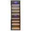 Дверца у большинства винных шкафов изготавливается из многослойного тонированного стекла. Такой материал, с одной стороны, позволяет оценивать коллекцию вин визуально, не открывая дверцу, в условиях стабильной температуры и влажности. С другой стороны, затемненное стекло с УФ-фильтром в виде напыления или специальной пленки надежно изолирует винные бутылки негативного воздействия ультрафиолетового излучения. Несколько слоев стекла обеспечивают при этом дополнительную защиту. Очень часто стекло в дверце заключается в рамку из дерева или металла. Натуральный или окрашенный металл или дерево не только способствуют прочности конструкции, но и превращают винный холодильник, особенно отдельно стоящий, в эффектный элемент обстановки.