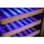 Кнопки для управления подсветкой выносятся на панель управления. Лампы синего, белого или голубого цветов могут располагаться в верхней части камеры или на боковых сторонах. Дополнительное освещение может устанавливаться в винных холодильниках с зоной для сервировки: она обеспечивает лучший обзор и доступ при подготовке вина к подаче.