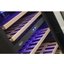 Это двухзональный винный холодильник с интуитивной электронной панелью управления, которая гарантирует комфортную и быструю установку необходимой температуры. Пять деревянных полок без лакового покрытия обеспечивают оптимальное хранение дорогих напитков. Система внутренней вентиляции обеспечивает циркуляцию холодного воздуха и равномерное охлаждение бутылок на всех полках. В каждой из зон можно установить температуру в диапазоне от +5°C до +18°C для правильного хранения белых, красных и игристых вин. Наружная вентиляция гарантирует защиту от перегрева и отток горячего воздуха. Автоматическая система размораживания упрощает уход за прибором. Светодиодная подсветка и индикаторы панели управления синего цвета совершенно безопасны и не влияют на качество вина.