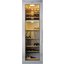 Дверца у большинства винных шкафов изготавливается из многослойного тонированного стекла. Такой материал, с одной стороны, позволяет оценивать коллекцию вин визуально, не открывая дверцу, в условиях стабильной температуры и влажности. С другой стороны, затемненное стекло с УФ-фильтром в виде напыления или специальной пленки надежно изолирует винные бутылки негативного воздействия ультрафиолетового излучения. Несколько слоев стекла обеспечивают при этом дополнительную защиту. Очень часто стекло в дверце заключается в рамку из дерева или металла. Натуральный или окрашенный металл или дерево не только способствуют прочности конструкции, но и превращают винный холодильник, особенно отдельно стоящий, в эффектный элемент обстановки.