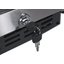 Замок в винных шкафах предназначается для предотвращения нежелательного доступа — в частности, для защиты винной коллекции от детей. Механический замок может располагаться на дверце, как у обычного шкафа или сейфа. Если же дверца холодильника полностью изготовлена из стекла, замок может находиться на цокольной решетке. Такие замки комплектуются набором ключей. Иногда на дверце устанавливаются электронные замки, открыть которые можно при помощи комбинации кнопок или при помощи чипа. Выбрать шкаф с замком можно как для установки в баре или кафе, так и для домашнего использования.