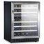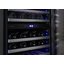 Компактный винный шкаф с двумя температурными зонами для хранения 46 бутылок. Вы можете перевесить дверь на другую сторону и встроить его в нишу. Климатические параметры регулируются на панели управления, для контроля влажности используется специальный поддон. Воздух очищается с помощью угольного фильтра.