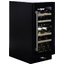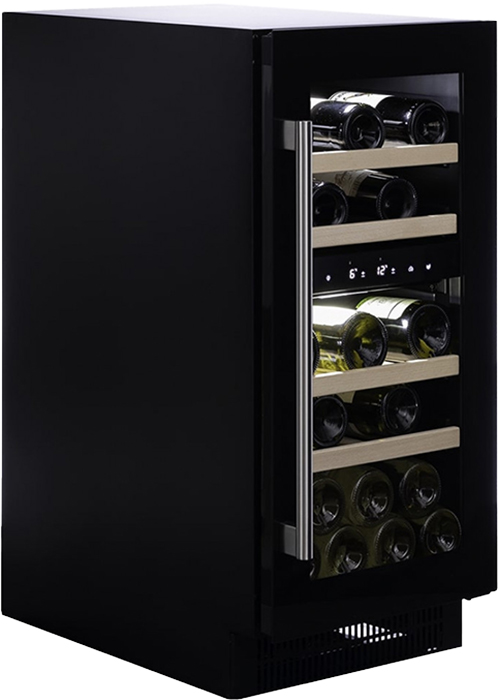 Стеклянная дверь — дополнительный изящный штрих к общему дизайну модели. Специальное покрытие защищает вино от влияния ультрафиолетовых лучей, которые проникают, если шкаф находится в солнечной комнате. Хранение становится еще безопаснее и герметичнее благодаря нескольким слоям стекол. Цвет корпуса — черный матовый. Дверь можно перевесить на другую сторону, поэтому вариантов размещения его в доме становится больше.