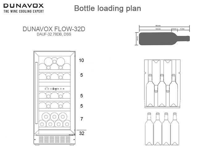 Винный холодильник Dunavox DAUF-32.78DMB имеет две температурные зоны, в которых одновременно можно хранить разные сорта алкоголя и выставлять разные сочетания настроек. Он встраивается в нишу, что удобно, если у вас ограничен метраж помещения. Благодаря компактным размерам данная модель — отличный выбор для офиса, гостиничного номера. Количество бутылок, которое можно разместить с учетом полной комплектации и из расчета объема бутылки 0,75 л, — 32 шт.