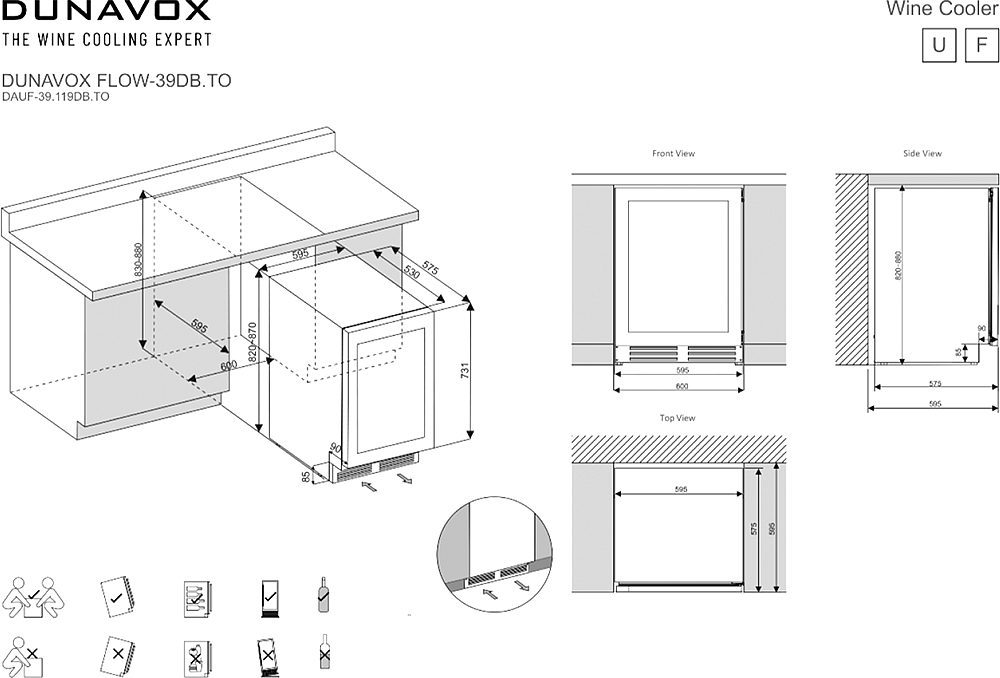 Некоторые отдельно стоящие винные шкафы, а также модели, встраиваемые в мебельную колонну, шкаф или другое закрытое пространство, оснащаются системой забора воздуха и вентиляционной решеткой, расположенными спереди в нижней части корпуса. Зазоры между корпусом шкафа и стенками мебели необходимы и в этом случае.