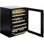 Стеклянная дверь — дополнительный изящный штрих к общему дизайну модели. Специальное покрытие защищает вино от влияния ультрафиолетовых лучей, которые проникают, если шкаф находится в солнечной комнате. Хранение становится еще безопаснее и герметичнее благодаря нескольким слоям стекол. Цвет корпуса — черный матовый. Дверь можно перевесить на другую сторону, поэтому вариантов размещения его в доме становится больше.