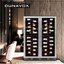 Производители предлагают винные шкафы, оснащенные одной, двумя, тремя и четырьмя камерами, которые могут располагаться как друг под другом, так бок и бок. Самые популярные — однокамерные модели, ассортимент которых особенно широк, но втором месте — двухкамерные. Над заметить, что количество камер не зависит напрямую от габаритов изделия: например, однокамерные модели увеличенных габаритов — далеко не редкость. Их высота может варьироваться в пределах от 14 см до 219 см, а ширина — от 13 см до 150 см.