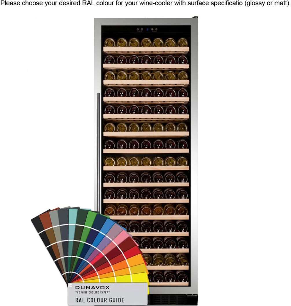 Всегда популярными остаются и универсальные цвета, особенно черный: белые корпуса винных шкафов можно найти в каталогах значительно реже. Черные корпуса могут изготавливаться как из металла, так и из дерева. Достаточно велик ассортимент винных холодильников в корпусах серого цвета и оттенка нержавеющей стали, которые сочетаются с любыми другими тонами и уместны а интерьерах как классического, так и современного стиля. Интересны изделия в корпусах «металлических» оттенков: серебряного, золотого, бронзового. Эффектно смотрятся модели, где детали золотого и бронзового цветов сочетаются с теплыми тонами натурального дерева.