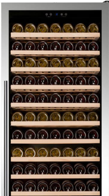 Ширина винного шкафа, как и другие их габариты, обязательно учитывается при выборе модели для домашнего или профессионального использования. Встраиваемые и отдельно стоящие модели выпускаются в самом широком ассортименте, так что разброс значений максимально велик. Неизменным спросом пользуются винные шкафы стандартной ширины — от 40 до 80 см, в современном и классическом стиле. Для встраиваемых шкафов наиболее удобной является ширина 60 см, позволяющая устанавливать их в кухонную тумбу или колонну. Вместимость их может быть самой различной и зависит в большей степени от высоты прибора. Маленькие винные шкафы с размещением на столешнице или даже с креплением к стене, рассчитанные на хранение от одной до десяти бутылок, могут иметь минимальную ширину от 13 см. На полках у них обычно помещается не более 5 бутылок, и используются они для охлаждения вина перед подачей. Большие винные шкафы с несколькими камерами и температурными зонами для длительного хранения и созревания разных сортов вина могут иметь ширину до 180 см, а максимальное значение этого параметра может составить 300 см. Как правило, это отдельно стоящие модели в деревянном корпусе с камерами side-by-side.