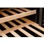 Полки в винных шкафах позволяют размещать бутылки для хранения в горизонтальном положении. Это необходимо, чтобы пробка постоянно смачивалась жидкостью и не пересыхала. Плотно закрытая пробка гарантирует, что внутрь бутылки не проникнет наружный воздух. Кислород, содержащийся в воздухе, может стать причиной ухудшения вкуса вина и даже его скисания. Кроме того, горизонтальное положение позволяет лучше оценить количество осадка. Материал изготовления полок выбирается, исходя из требований, предъявляемых к содержанию коллекции вин. Одним из основных требования является отсутствие или максимальное сокращение вибрации и хорошая фиксация бутылок на месте хранения. Даже если полка выдвигается, бутылки должны оставаться на своем месте. Второе требование исключает применение стеклянных полок, как в обычном холодильнике: на них почти невозможно зафиксировать бутылки.