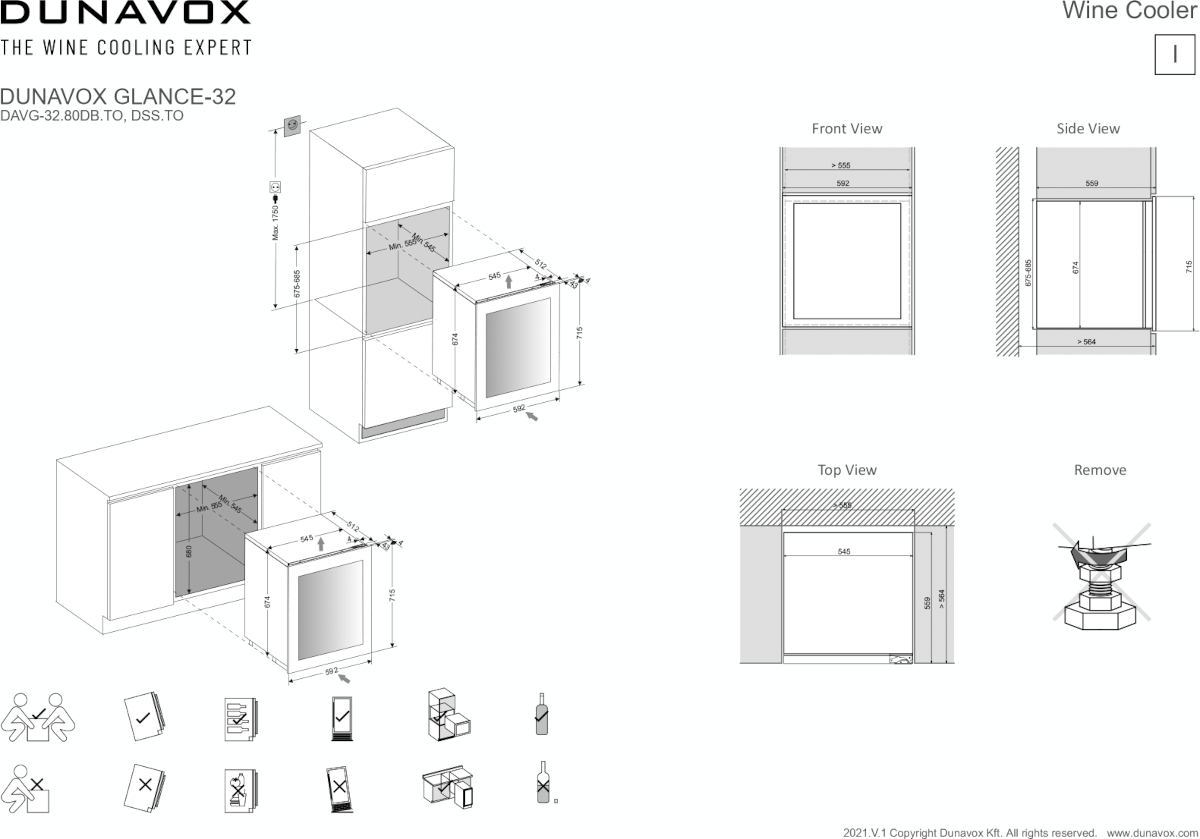 Некоторые отдельно стоящие винные шкафы, а также модели, встраиваемые в мебельную колонну, шкаф или другое закрытое пространство, оснащаются системой забора воздуха и вентиляционной решеткой, расположенными спереди в нижней части корпуса. Зазоры между корпусом шкафа и стенками мебели необходимы и в этом случае.