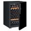 Глухая дверь без стекла надежно защищает вино от влияния ультрафиолетовых лучей, которые проникают, если шкаф находится в солнечной комнате. Это гарантирует также герметичное хранение. Цвет корпуса — черный.
