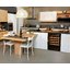 Встраиваемые холодильники для вина оснащаются специальной системой вентиляции: охлаждающая система у них находится в нижней части корпуса спереди. На такие устройства не навешивается мебельный фасад: дверца с затемненным стеклом остается на виду и открывается на достаточно широкий угол для свободного выдвижения деревянных полок.
